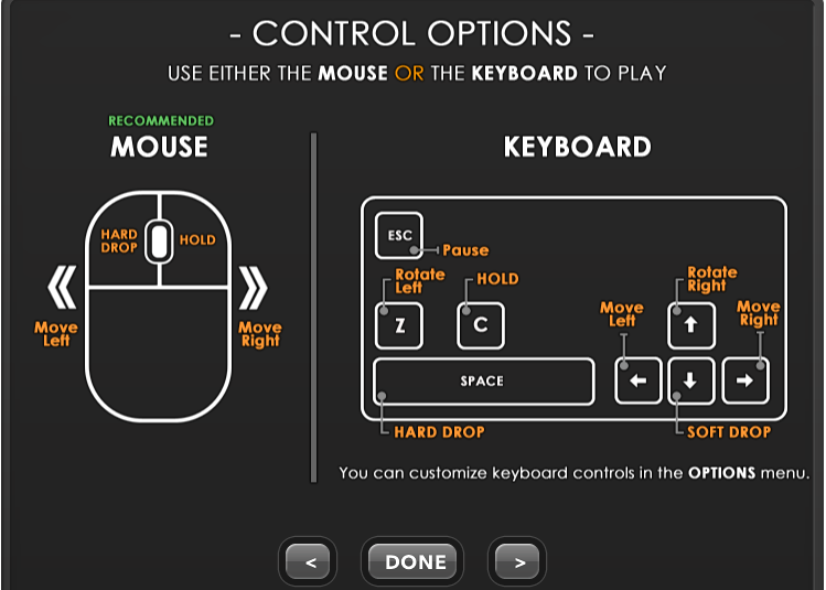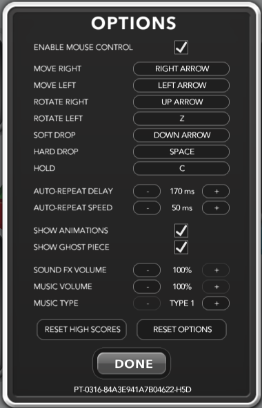 이정도만 설명 드려도 대부분의 분들은 테트리스 무료게임 start 의 진행 방식을 찰떡같이 이해 하셨을 것 같습니다. 게임을 할 때 제일 중요한건 직접 해보는 것인데요. 하다보면 사용설명서가 필요없는 수준이죠. 직감적으로 플레이하는 게이머의 모습! 그것이 멋있는게 아닐까요? 혹시라도 키보드가 고장나거나 했다면 Options 를 눌러서 키보드 세팅을 변경하실 수도 있습니다. 설정을 다 끝내셨다면 Resume 를 클릭해 다시 재개할 수 있어요.