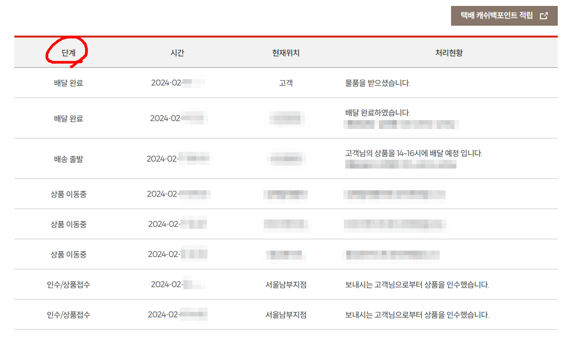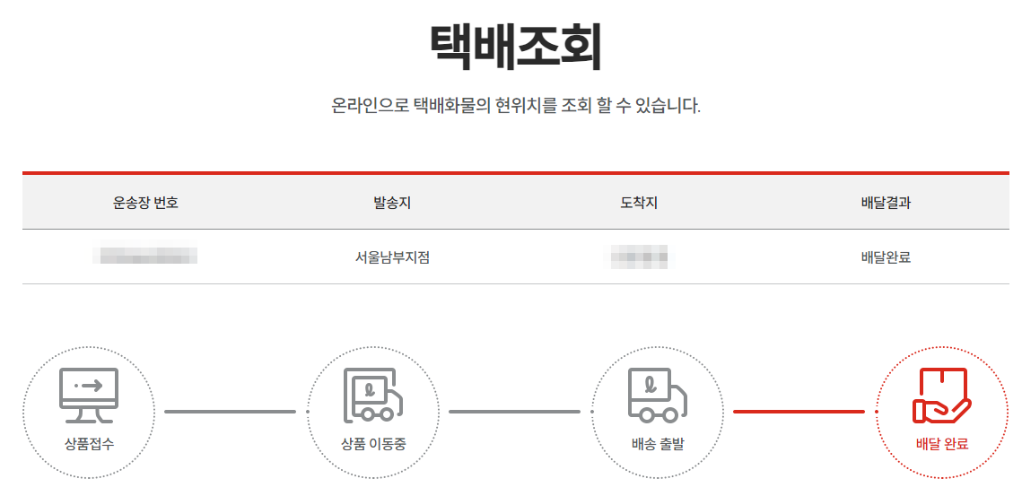 자 운송장번호는 총 12자리로 이루어진 숫자입니다. 그것을 입력 후 "조회"버튼을 눌러보실까요? 그러면 발송지, 도착지, 배달결과를 알려주는데요. 아래에 보면 배달이 어디까지 왔는지 실시간으로 확인이 가능하세요. 단계 부분에 보시면 "인수/상품접수" , "상품 이동중", "배송 출발", "배달 완료" 라는 단계가 진행되고 있는걸 볼 수 있답니다. 그런데 혹시라도 택배예약번호로도 가능하답니다. 근데 운송장번호 치는게 더 편할거에요.